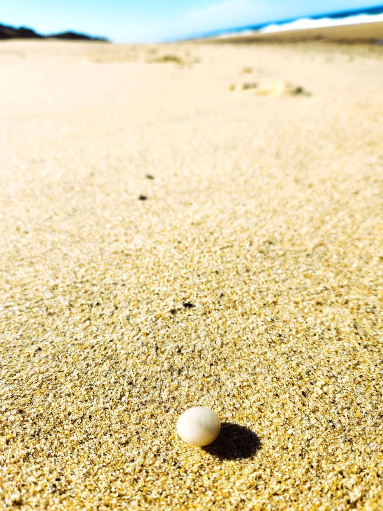 TOUCH | Pulverized pebbles and sand, warm turning cool when the cold water takes it over. Ocean water, refreshingly cool and airyated from the consistent movement. Dry sun on my bare face, shoulders, and feet. A light breeze from the water moves my hair over my face.